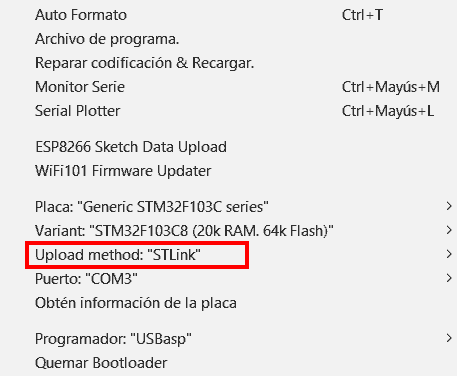 PROGRAMAR USANDO EL PROGRAMADOR ST-LINK(clon)